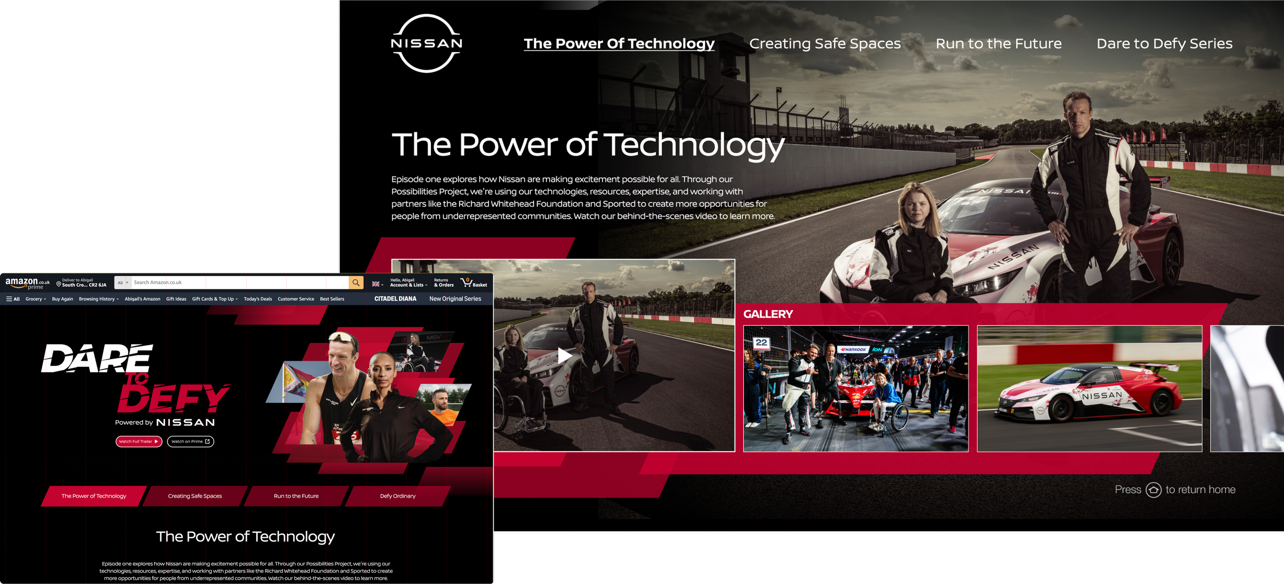 We brought the idea to life beyond the series with a bespoke Fire TV and Amazon landing page experience. To deepen the storytelling, we created three behind-the-scenes advertorial films that explored each episode from a new angle, focusing on the real people, challenges, and impact behind the Nissan Possibilities Project. These extensions offered a more personal, purpose-driven layer to the campaign, connecting audiences to the heart of the story.
