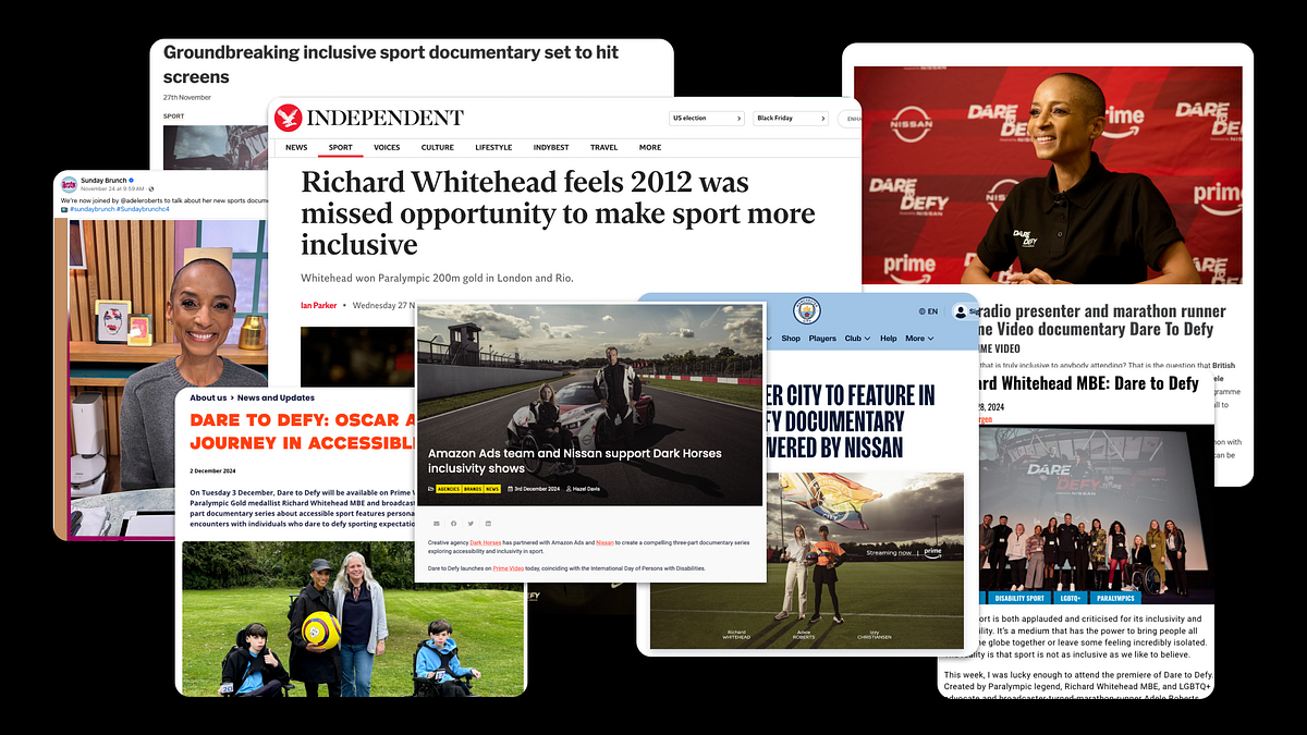 a three-part documentary series on Prime Video, following brand ambassadors Richard Whitehead MBE and Adele Roberts as they uncover barriers to participation and work toward staging the most inclusive running event ever. Selected over pitches from major UK broadcasters, the project brought Nissan’s purpose to life through authentic, impact-driven storytelling.